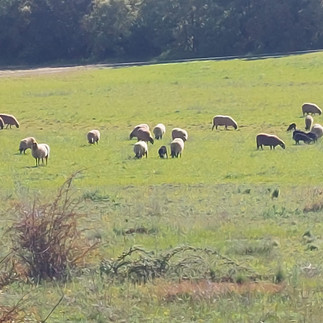 Het landschap is licht glooiend met weiden met koeien of schapen, graangewassen en wat wijnstokken die er hier eerder verwaarloosd uitzien.