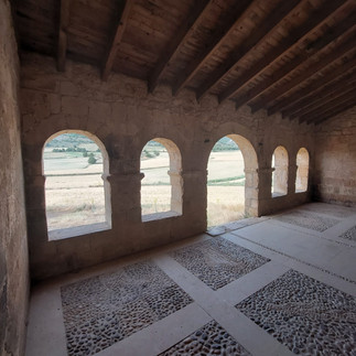 Ik ben vlakbij Lerma, maar ik maak toch nog drie haltes: halte één in Solarana met het toegangsportaal van de kerk Nuestra Señora de la Asunción in Vlaamse stijl en ook een unieke 15de-eeuwse doopvont of Pila Bautismal. Als men hier van Vlaamse stijl spreekt bedoelt met een laat-gotisch gedeelte zoals een portaal met links en rechts precies twee pinakels (torentjes) die je normaal boven op de kerk staan. Vlaanderen heeft heel veel sporen nagelaten in Spanje. Halte wee is vlakbij in Castrillo Solarana, dat zo heet omdat het San Pedro kerkje op een hoogte gebouwd is en op een versterkte kerk gelijkt. THalte drie bij het kerkje van Santa Maria van Revilla Cabriada. Alle drie zijn gedeeltelijk in romaanse, gotische en renaissancestijl gebouwd. De romaanse delen zijn bijzonder mooi. Heel weinig toeristen komen hier voorbij en zeker geen pelgrims. Spijtig want ze zijn allemaal super mooi.