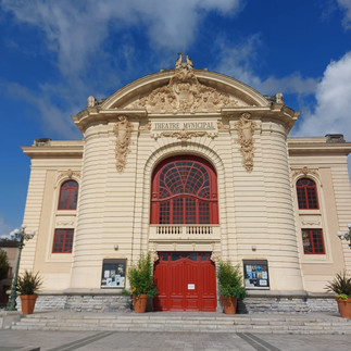 De Place Jean Jaurès heeft een mooie fontein. Ik wil het plein voor de kathedraal verlaten als er een koppel met drie kinderen toekomt en de kerkdeur openmaakt: de koster en zijn gezin want om 10 u 30 is er mis . Zijn lieve vrouw zegt onmiddellijk dat ik een speciale stempel kan krijgen als pelgrim. Dus zie ik er als een pelgrim uit, wat verfromfraaid en niet helemaal fris. De kinderen zijn ondertussen al bezig de tafellakens op het altaar te leggen terwijl vader koster mij meeneemt naar des sacristie voor de stempel. Naast het Goya Museum staat een prachtig gerestaureerd theater dat ik in en prachtige zon kan fotograferen.
