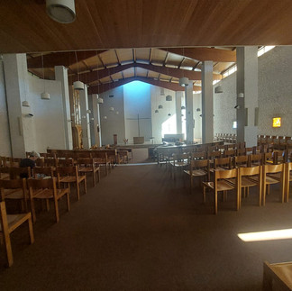 Om 19u nadat mijn tekst klaar was heb ik in stilte met vijf anderen die een soort retraite doen, deelgenomen aan het avondmaal (met zelfs wijn) in de abdij van La Vigne in Pradines. Om 17u30 had ik al de Vespers bijgewoond in een prachtige moderne kerk die me aan Le Corbusier deed denken; witte muren en bijzondere lichtinvallen die een speciale sfeer creëren. Veertig zusters die in een ruime kring zitten en mooi samenzingen. De 40 minuten vliegen om alsof ik in een concert zit. Hier zien leken de kloosterzusters, in Autun kon dat niet. Kloosterregels worden dus verschillend geïnterpreteerd.